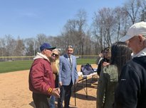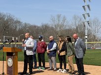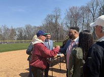 Mayor Sarno added, “Being over at Walker Grandstand always reminds me of the old days of Sunday afternoon baseball in the park. I was so surprised and happy today to run into my old friend Vinny Maratea, a fellow catcher in our high school days. Growing up, playing ball and being involved in sports, you make many great memories and lifelong friends.”