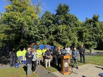 Mayor Sarno, Parks Director Ashe, City Councilor Tim Allen, and city officials joined with the Community Preservation Committee and the Springfield Conservation and Nature Stewardship, Inc. for unveiling of Alden Street Park renovations This morning along