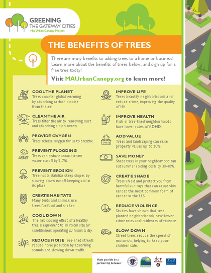 MA DCR has expanded the planting zone, and now homeowners, business owners, and renters all across Springfield can get free trees on their property to shade your home, parking lot, porch, or building.