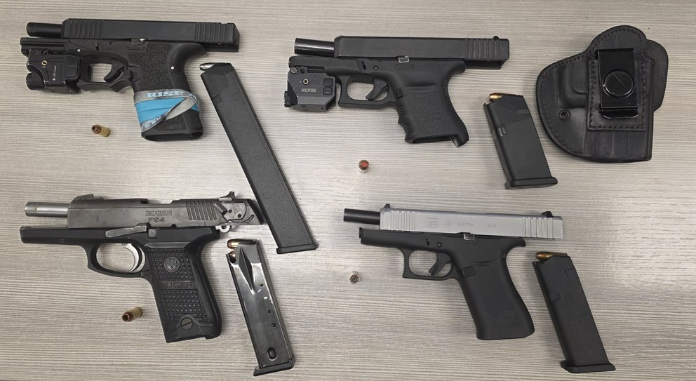 Inside the vehicle, officers recovered four firearms and a bundle (10 bags) of heroin. The four individuals inside the vehicle were placed under arrest.