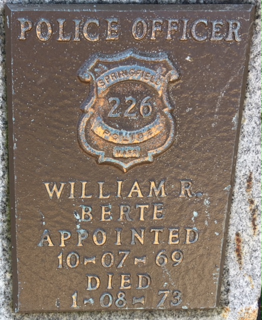 Springfield, Mass. --- Today we remember Officer William Berte who was killed in the line of duty on January 8th, 1973. Officer Berte began serving the city of Springfield on October 7th, 1969. Officer Berte was 28 years old, serving with the Springfield Police Department for 3 years.